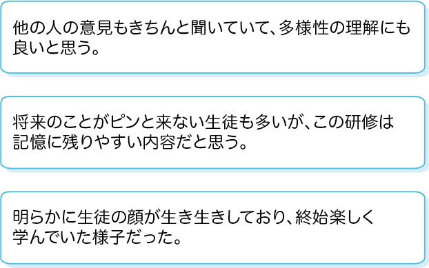 ・課外授業(単発)のため、せっかくやっても生徒の記憶に残らないのではないか。