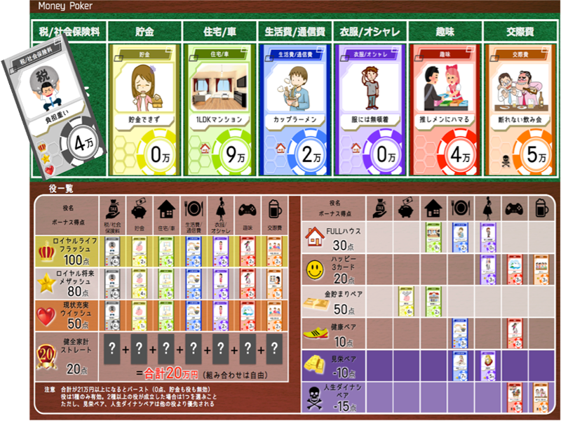 皆さんには社会に出て一人暮らしを始めた生活を疑似体験してもらいます。限られた収入の中で、理想の自分の生活を想像しながら、あなたらしい「理想の支出バランス」を楽しみながら見つけられます。